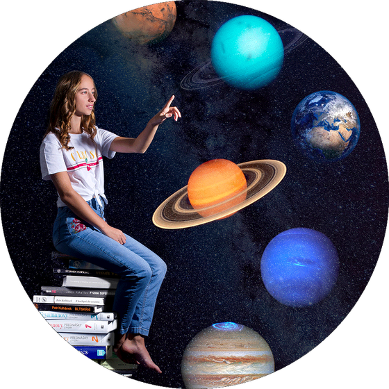 Simona Beerová se věnuje umělecké fotografií i astronomii. Svými kolážemi propojuje ženskost a vesmír, nebo s lehkostí odhaluje krásy astrofyziky. Na jejích snímcích dívka drží Zemi v dlaních, opírá se o planety, nebo usedá na knihy a ukazuje krásy Sluneční soustavy.
