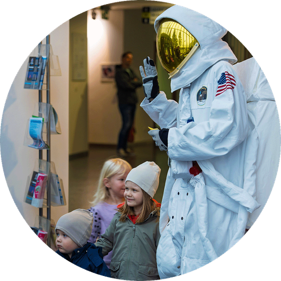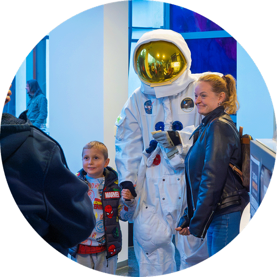 Během vaší návštěvy se můžete v prostorách Planetária Ostrava, mezi exponáty v expozicích či sále sférického kina setkat s astronautem.